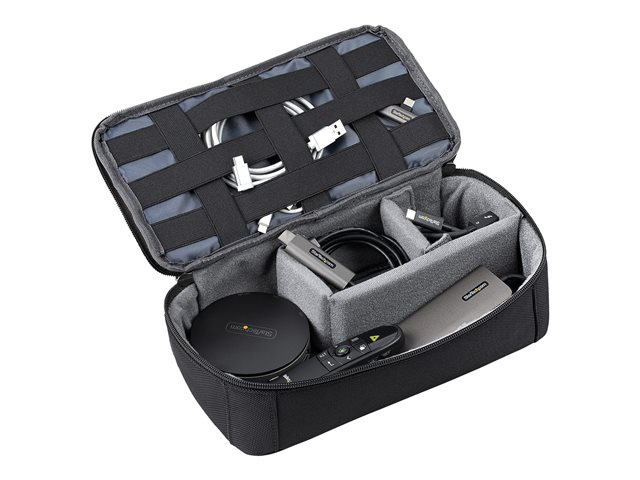 - POCHETTE D'ACCESSOIRES AMOVIBLE : rangée dans une section latérale inférieure séparée du sac pro, facilement accessible, gardez vos chargeurs, câbles, adaptateurs d'écran, souris, outils et autres organisés ; dimensions de la trousse : 10,5 x 5,25 x 3""