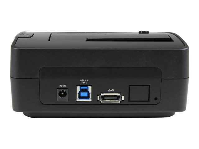 - SPECS : Dock pour disque dur à 1 baie - SATA 1/2/3 avec TRIM - Connexion hôte eSATA (6Gbps) ou USB 3.2 Gen 2 (10Gbps) - Conception sans outil - Baie à chargement par le haut avec bouton d'éjection - DEL d'alimentation - câbles eSATA, USB-A/C de 1m inclus