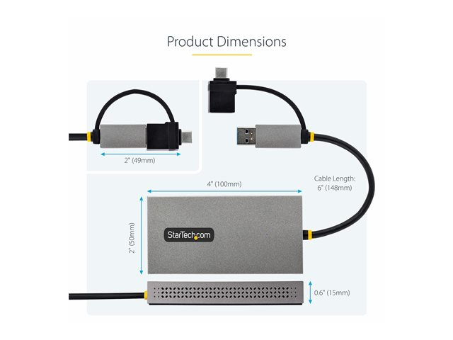 107B-USB-HDMI - StarTech.com Adaptateur USB vers Double HDMI, USB A/C, 1x4K30Hz/1x1080p