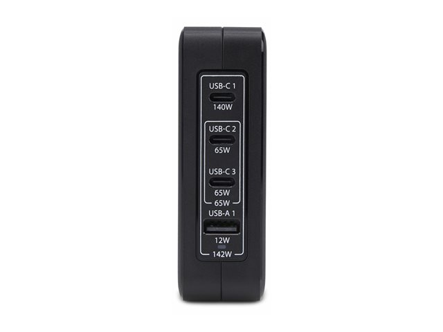 Adaptateur secteur - technologie GaN - 140 Watt - 5 A - Power Delivery 3.1 - 4 connecteurs de sortie (USB, 3 x USB-C) - noir