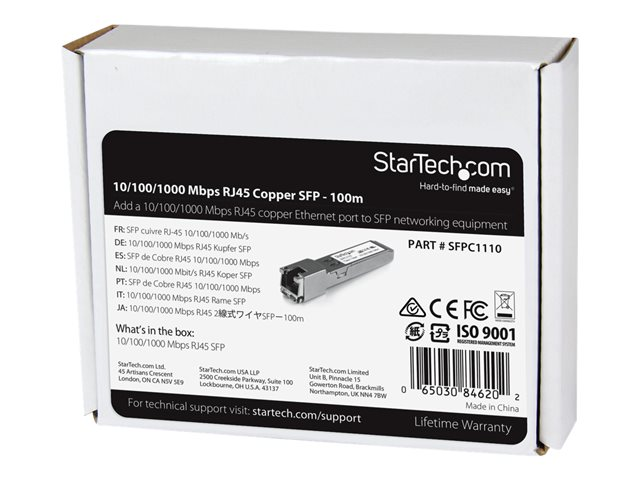 SFPC1110 - StarTech.com Module de transcepteur SFP Gigabit RJ45 en cuivre compatible Cisco SFP-GE-T