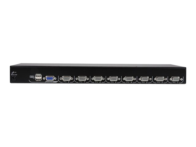 - Permet de contrôler jusqu'à 8 ordinateurs directement connectés et jusqu'à 64 ordinateurs avec une installation en cascade de 8 commutateurs KVM supplémentaires