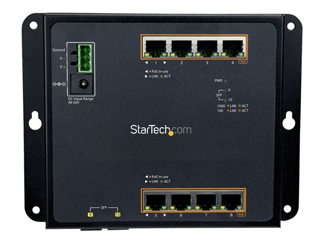IES101GP2SFW - StarTech.com Switch Gigabit Ethernet géré à 8 ports PoE+ avec 2 connexions SFP